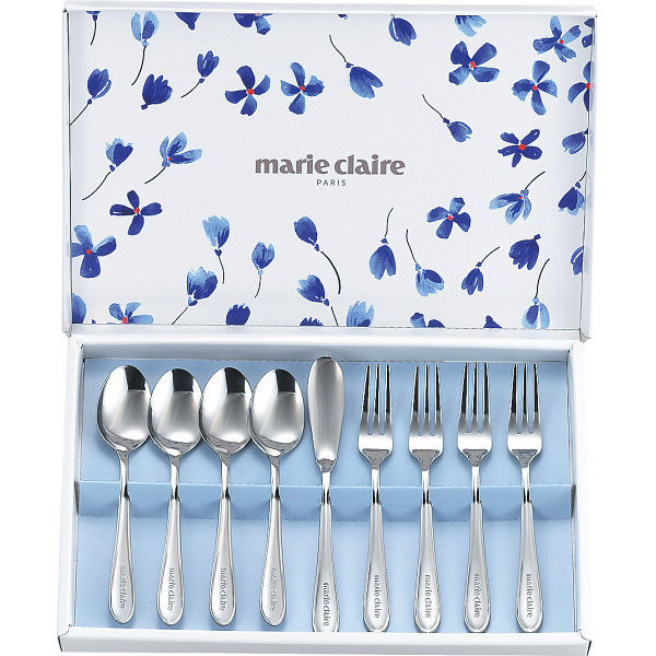 コーヒースプーン(長さ約12cm)・ヒメフォーク(長さ約12.5cm)各4本、バターナイフ(長さ約13.3cm)1本